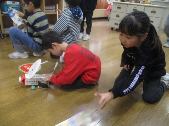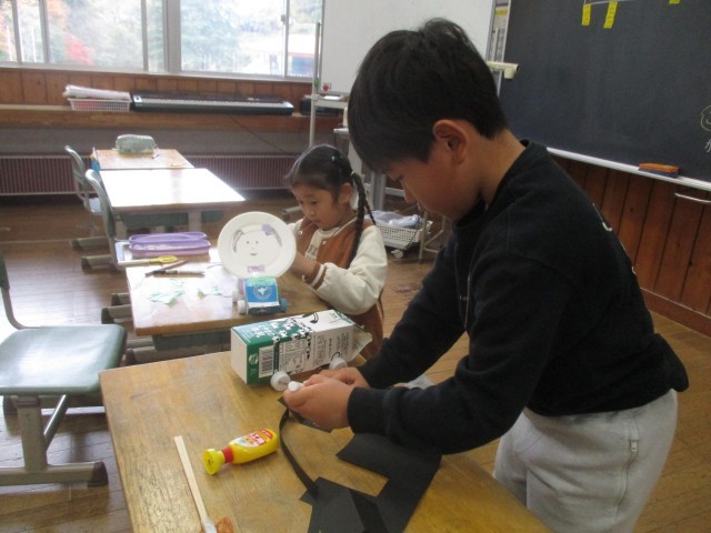 生活科の学習では、身の回りの材料を使って動くおもちゃをつくりました。
