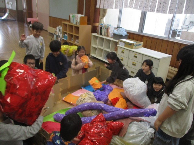 図画工作科の学習でつくっていた、大きなスペシャル弁当が完成しました。