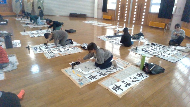 書初めの学習では、「平和な海」という題材をもとに、集中して丁寧に練習に取り組みました。一画一画を意識しながら、真剣な表情で文字と向き合う姿が見られました。