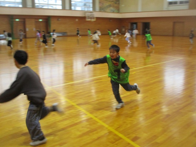 今日は、体育館で行うプログラムを2つ行いました。一つは「けいどろ」で、もう一つは「大根抜き」です。