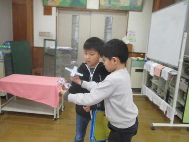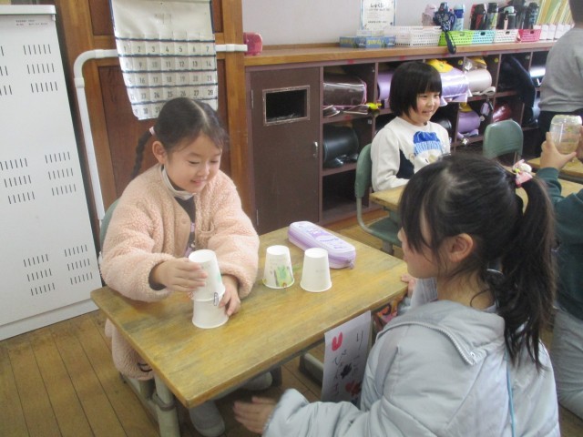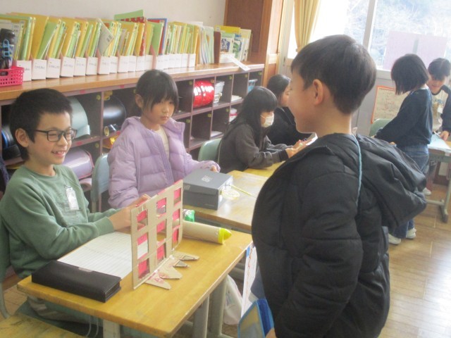 生活科の学習でつくったおもちゃを、松組のみんなに遊んでもらいました。
