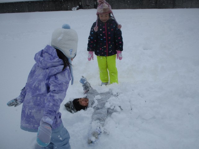 ふわふわの雪に向かって一斉に駆け出し、思い思いに雪遊びを楽しんでいました。