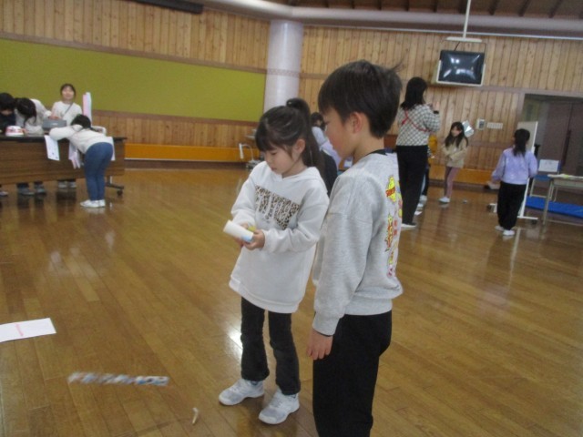 「頑張ってつくったから、他の人にも遊んでもらいたい」という思いで、1年生を招待し「みんな楽しいわくわくおもちゃまつり」を開催しました。
