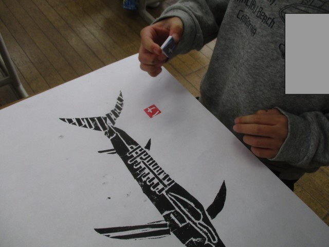 図画工作科の時間に制作していた魚の版が仕上がりました。