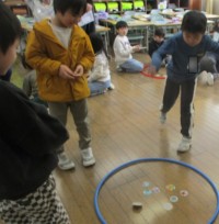 今日の生活科「昔からの遊びを楽しもう」では、自分でやってみたい遊びを選んで活動しました。
