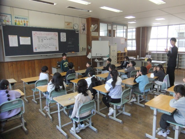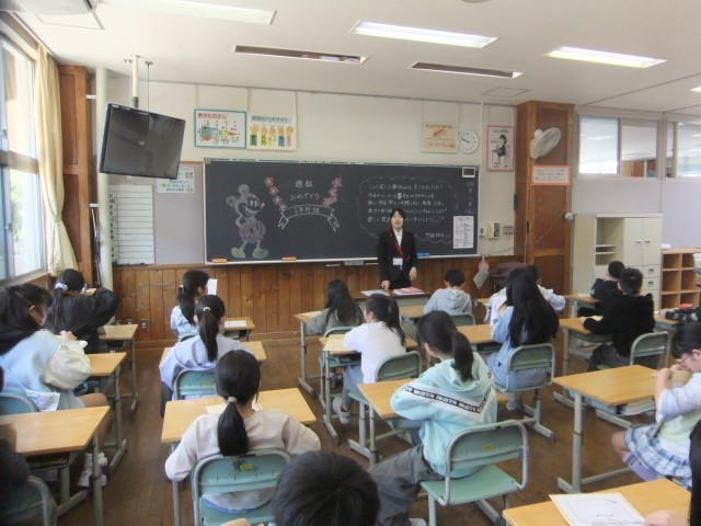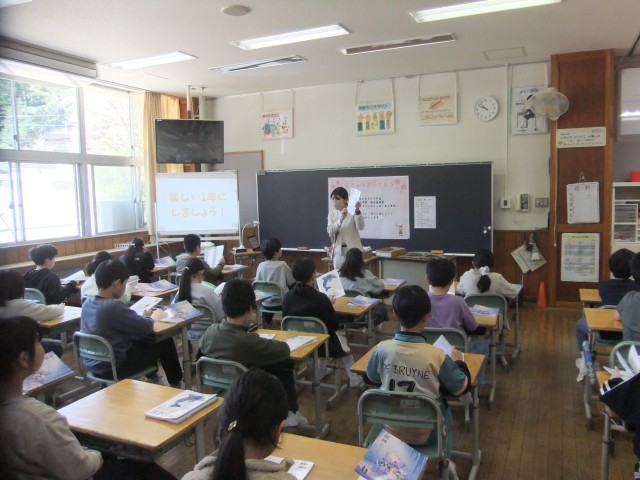 それぞれの学年や学級で、担任の先生からの話を聞いたり、自己紹介をしたりしました。