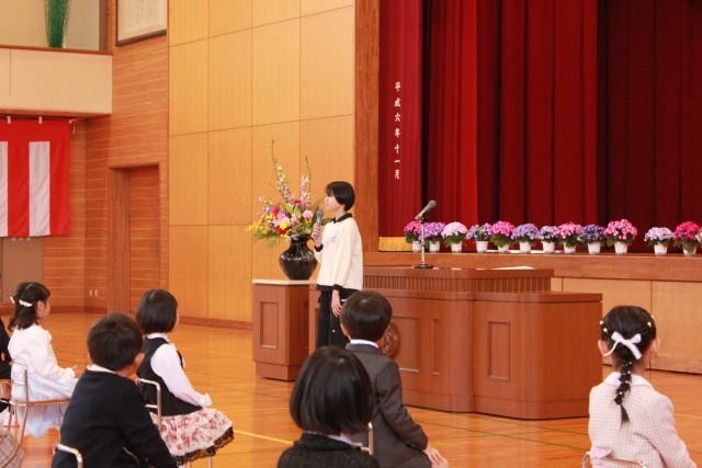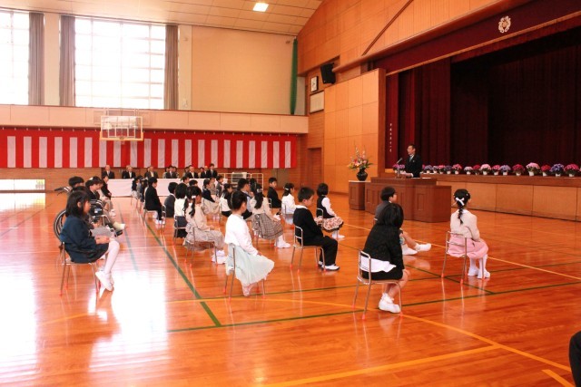 先生の話をしっかりと聞き、行儀よく式に参加する八尾っ子です。