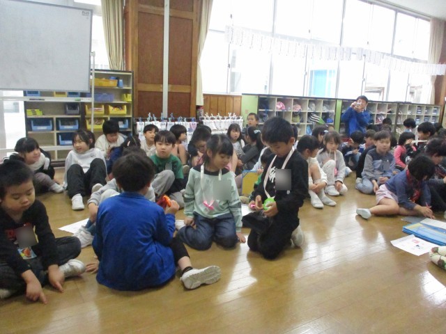 1・2年生でグループになり、校内を回り、学校についてのクイズに答えていきます。どの子供たちも笑顔で参加していました。