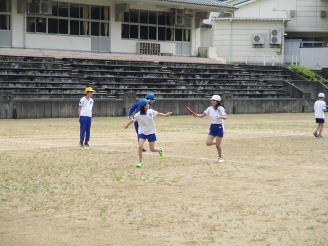子供たちは、運動会に向けてリレーに取り組んでいます。