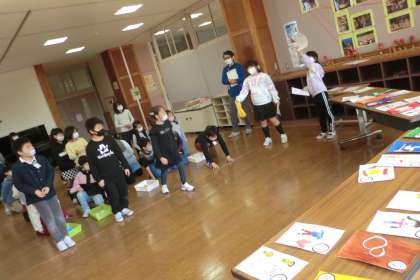 ・中…カルタチームは、場の設定やルールを工夫しました。クラウチングスタートで気合いを入れる姿も見られ、楽しい時間になりました。