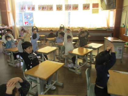ウイルスに負けない元気パワーを高めるため、委員会の子供たちが作った動画を見ました。クイズや歌、ダンスがあって、興味深く動画を見ることができました。