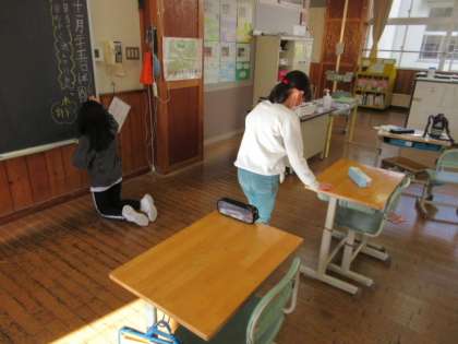 子供たちは、今自分たちの教室でどのような清掃が必要かを考え、進んで働く姿が見られました。
