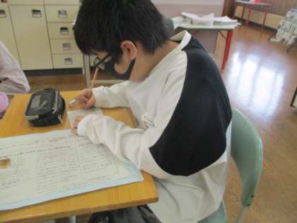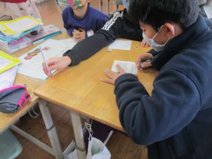 2時間目は、6年生さんが書いた日本の伝統文化に関するパンフレットを読んで感想を書きました。和菓子や花火、からくり人形などについてまとめられたパンフレットを読みながら、驚いたことや面白かったことについて感想をまとめました。