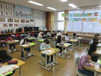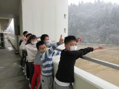 子供たちは、今日も授業に集中しています。休み時間には、今年初めての雪に目を輝かせていました。