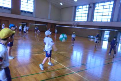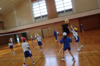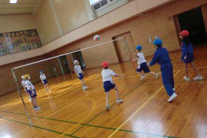 学年体育では、ビーチバレーボールに取り組んできました。サーブやトスが上達し、チームで声をかけながらパスをつなぐ姿が増えました。