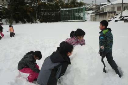 4年生では、学年体育の時間に雪遊びを行いました。仲間と共に思いきり楽しんでいました。