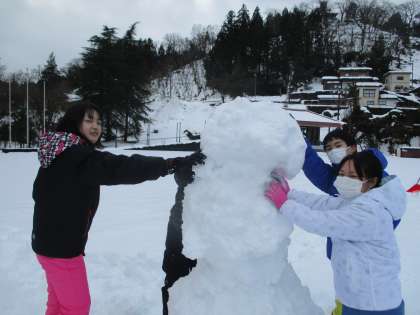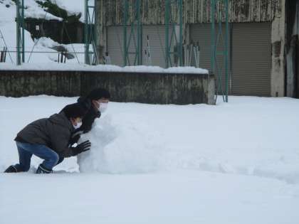 去年は雪に恵まれず、クラスのみんなで雪遊びをすることができませんでした。今日はお楽しみ会も兼ねて、雪で思う存分、遊びました!道具を使って大作をつくったり、芸が細かい作品をつくったりして、ファミリーで助け合う姿がすてきでした。