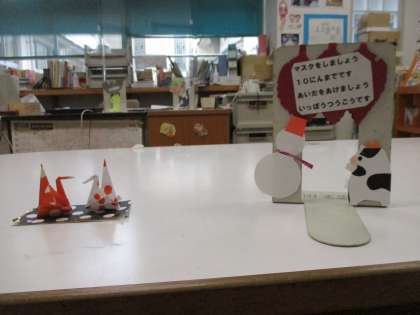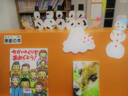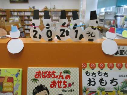 終業式後の図書室をのぞくと、すでに新年に向けた準備がされていました。図書館司書の先生が見せてくださった、雪だるまならぬ「牛だるま」に心を奪われ思わずシャッターをきりました。来年も、たくさんの子供たちに笑顔を届けてくれる、素敵な図書室です。