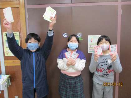 2学期の終わりに呼びかけた「ユニセフ募金&書き損じハガキ」の回収に行きました。