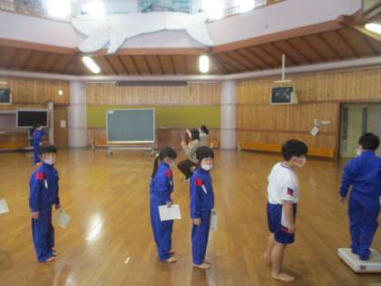 今日は発育測定がありました。身長、体重、視力を計測しました。3回目の発育測定になりますが、説明がなくてもやり方を覚えている子がたくさんいました。