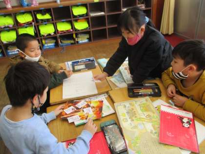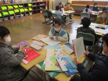 今日の国語科では、友達の好きな本の話を聞いて、聞きたいことを質問するという活動を行いました。3〜4人でグループになって、順番に発表をしました。