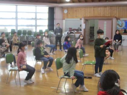 5年生が中心になって進める代表委員会での「卒業を祝う会について」の話合いに参加しました。松組からも竹組からも、すすんで参加したいという4人が集まりました。