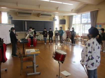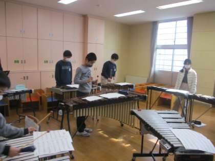 3つの部屋に分かれ、お互いの音を聞き合いながら練習しました。譜面を目で追いながら、必死についていっています。