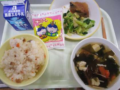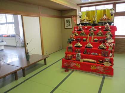 調理実習を喜ぶ姿を、隣の椿庵のお雛様たちもこっそりのぞいていました。調理実習の後の給食をみんな食べきれるか心配でしたが、春を感じるメニューを「食べキリン」。ごちそうさまでした!