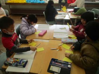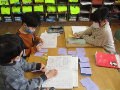 国語科「にている漢字」の学習で、前回見つけた似ている漢字を使って、グループで神経衰弱を行いました。