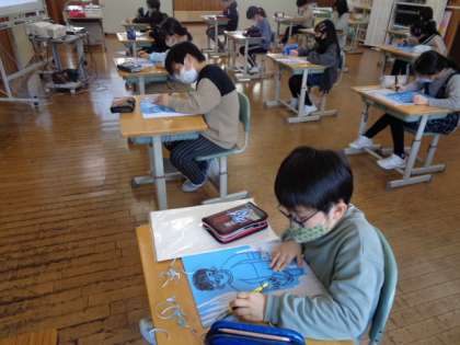 ルールを守り、安全に気をつけて彫っています。彫っているときは、彫る音以外何も聞こえないほど静かに集中できていて、もうすぐ5年生だと感じます。