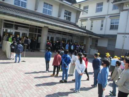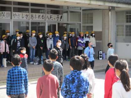 6年生とのお別れの式が行われました。在校生にとっては、今日が6年生とのお別れの日になります。これまでの感謝の気持ちを、「エール」のせて伝えました。