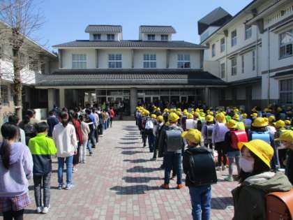 6年生とのお別れの式が行われました。在校生にとっては、今日が6年生とのお別れの日になります。これまでの感謝の気持ちを、「エール」のせて伝えました。