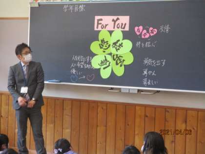 4年生になった44名の子供たちは、やる気に満ちたきらきらした瞳で始業式や学年集会での話を聞いていました。
