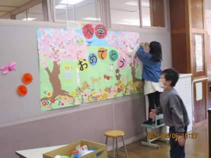 入学式に向けて、あちらこちらで張り切る5、6年生の姿が見られました。新一年生の入学をとても楽しみにしています。