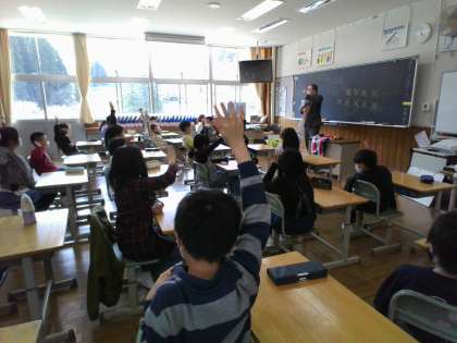 先生の年齢を当てるクイズや、好きなものを紹介し合う活動で、教室は笑いと笑顔に包まれました。