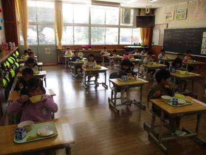 おいしそうにもりもり食べる様子を見ていてうれしくなりました。もう少し学校生活に慣れたら、自分たちで配膳していきましょうね!