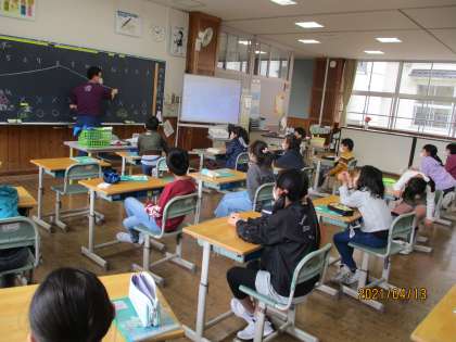 4年生になって初めての理科の学習です。桜の木の1年の移り変わりを写真を見ながら、「桜の花はどうして散っていくの?」「なぜ咲くの?」と、疑問を楽しくみんなで意見交換をしました。