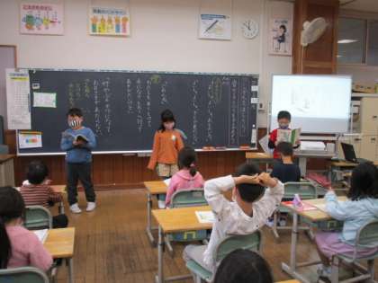 学習参観では、国語の学習で「ふきのとう」の音読発表会を予定しています。今週は子供たちと一緒に台詞や様子を確かめながら、音読の工夫を考えています。役に分かれて読むことで、学習がより楽しくなりました。