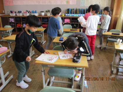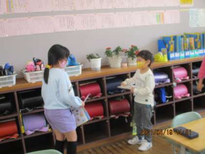 昨日の「外国語活動」の学習では、英語であいさつを交わしました。男の子も女の子も互いに仲良く声をかけ合っていました。