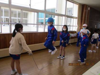 「たつ1」の時間に、みんなで縄跳びを跳んで楽しんでいます。