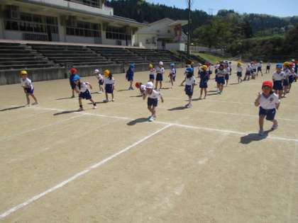 「位置について、用意」のときにピタッと止まれるようになりました。やる気いっぱいの1年生、とても素敵です!