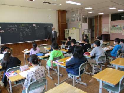 算数科では、少人数指導を始めました。4年生の学習を振り返りながら、5年生の学習内容の基礎基本を積み上げ、応用力を養っていけるよう指導していきます。