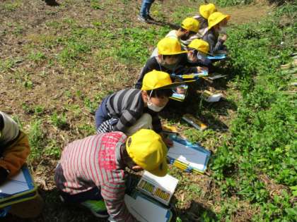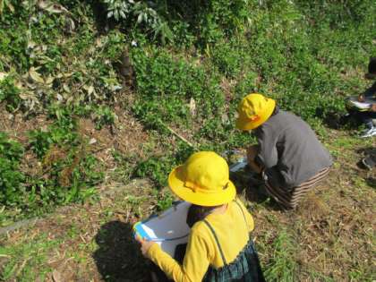竹林の中に、大きなたけのこを発見!!その大きさにびっくりして、スケッチする子がたくさんいました。