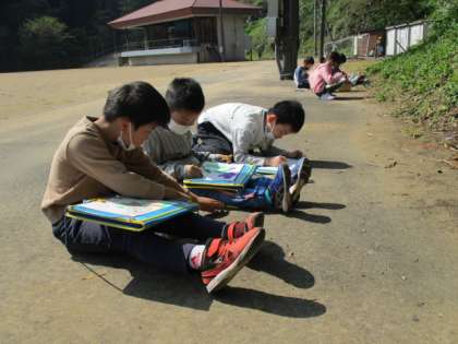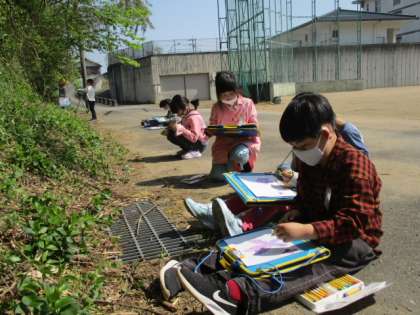 ゆっくりと腰をおろして、描いている子が多かったです。色を何色も重ねながら、大きく丁寧に描いていました。