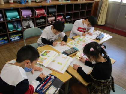 生活科の学習では、自分で一つ野菜を決めて、自分たちの力で育てる学習をしていきます。早速、春に植えられる野菜はどんなものがあるか、聞いてきて、自分で育てる野菜を決めました。今日は、自分で育てる野菜を一生懸命本で調べました。水やりや育てるときのポイント、収穫のタイミング等、思い思いに大切だなと思うことをメモをしていました。