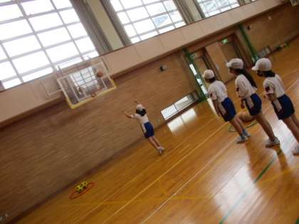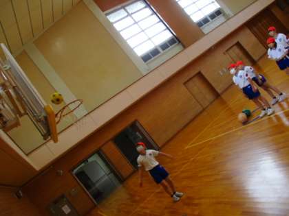 「てる子ちゃん」の効果が出始めてはいましたが、4限目は体育館で学習を行いました。外でリレーができず、始めは残念そうでしたが、室内だからこそできる走力を高めるトレーニングや、今後始まるバスケットボールにつながるシュートゲームに、いつの間にか夢中になって取り組んでいました。