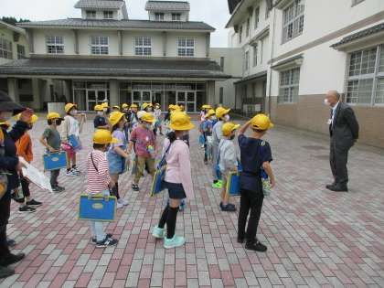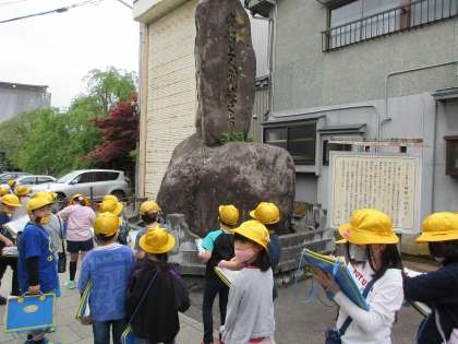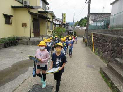 今日は社会科で、八尾町の地図をつくるために町の中を歩いて見学しました。