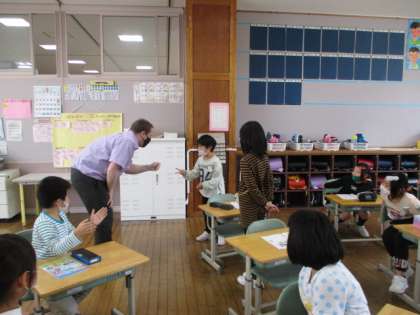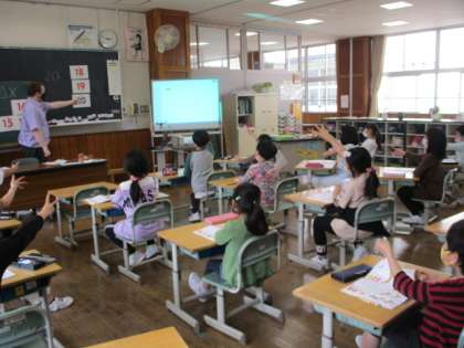 今日はALTの先生と久しぶりに学習しました。みんな楽しみながら、外国語の言葉を繰り返し唱えるなど、熱心に取り組んでいました。