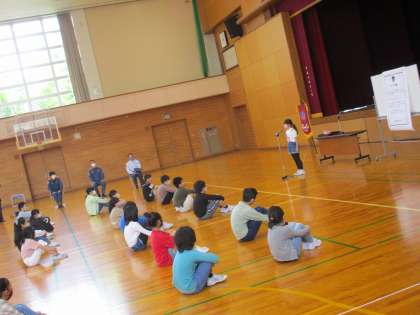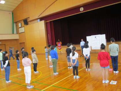 5年生では、BFC(Boys and girls Fire Club)のバッジ授与式が行われました。八尾消防署の方からバッジをいただくとともに、その役割や活動の大切さについて教えていただきました。