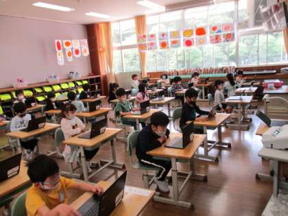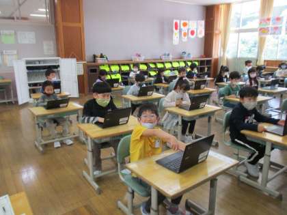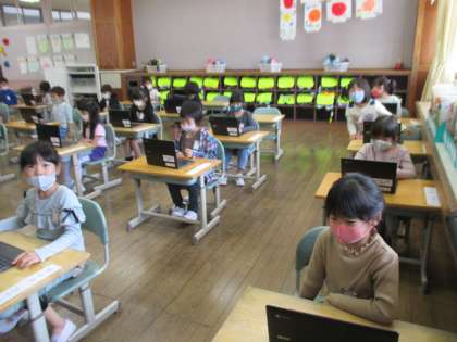 6年生の皆さんに手伝ってもらい、今日は初めて、「自分のクロムブック」にさわりました。富山市から割り当てられているIDや初期パスワードの入力を行い、その後クロムブックの機能を使ってアンケートの入力を行いました。6年生の皆さんには大変お世話になりました。ありがとうございました。